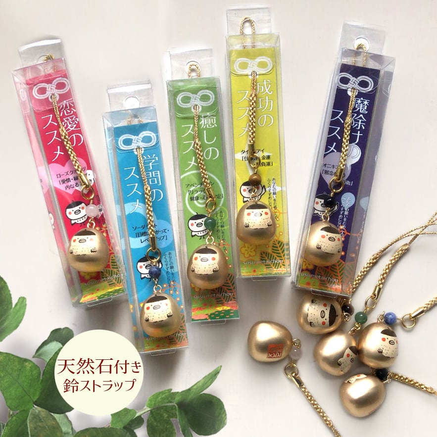 鈴ストラップ天然石つき ススメ隊長*ふくらすずめ福音鈴
